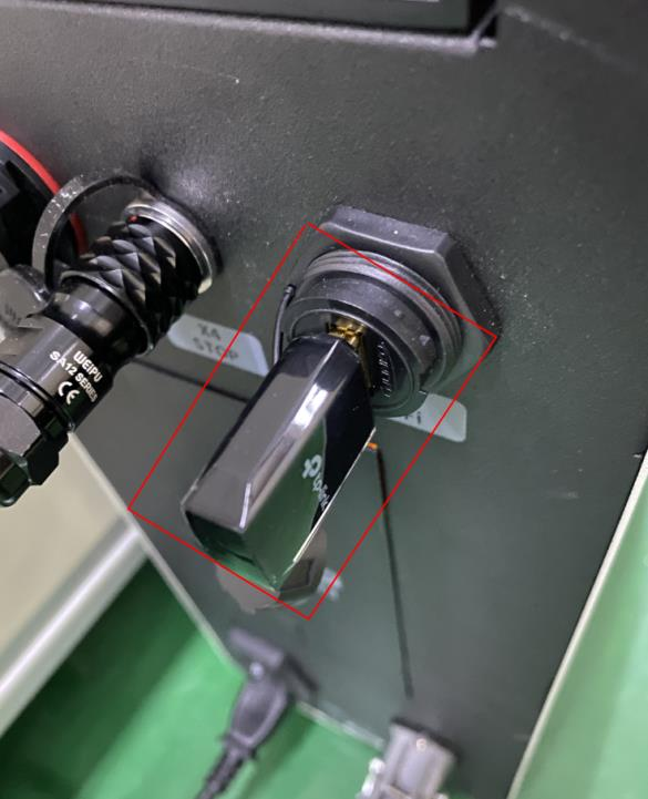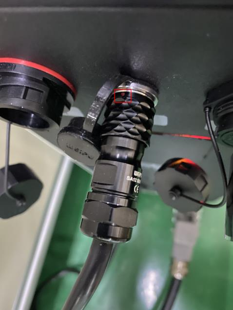 將急停開關(guān)線纜插入急停開關(guān)接口。連接時將接頭上紅色點與接口上紅色點對齊插入即可。