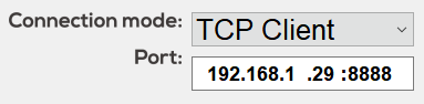 (服務(wù)器)模式,根據(jù)您設(shè)置的通訊盒 IP 及端口號,修改下圖的目標(biāo) IP 及端口,如下圖所示。通訊盒做 TCP 服務(wù)端時,出廠默認(rèn) IP 為 192.168.1.29,監(jiān)聽端口為8888。