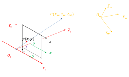 對于任何物體的衡量都是相對的,都需要選擇一個基準,因此建立世界坐標系(OW-XWYWZW)來衡量空間中攝像機和目標物體的空間位置是不可或缺的。因為世界坐標系是變化的,故想要直接確定圖像平面與世界坐標系之間的相對位姿關系是困難的。