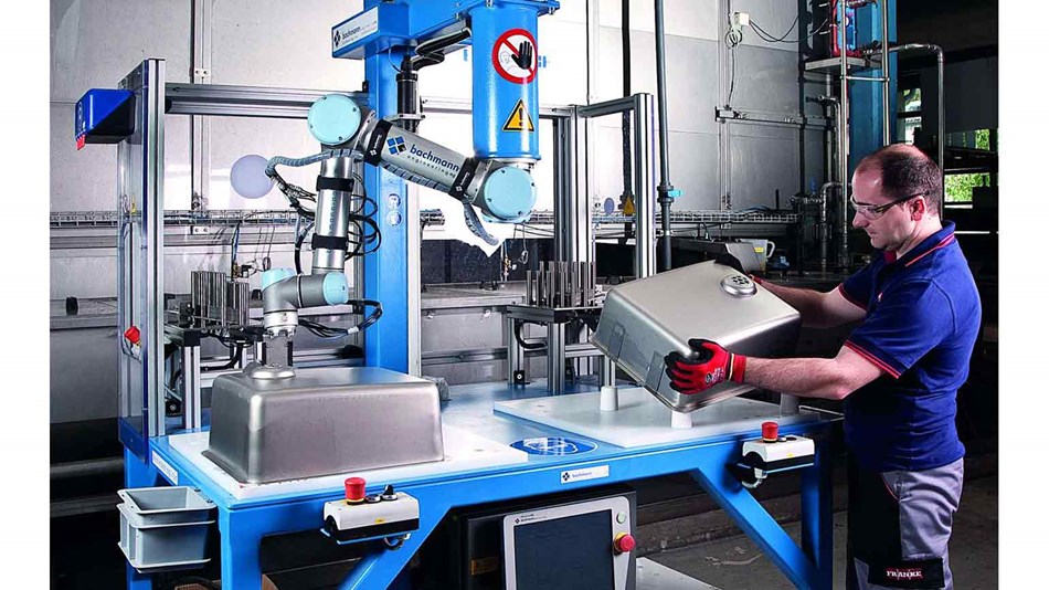 例如,總部位于俄亥俄州的制造商蒂森克虜伯-比爾斯坦(thyssenkrupp-Bilstein)成功地將UR10應(yīng)用于檢查汽車懸架零件。制造工程師道格·麥基(Doug McIe)說:“以前我們進(jìn)行儀表檢查時(shí),我們會(huì)每一兩個(gè)小時(shí)檢查兩個(gè)零件,以確保我們?nèi)栽谠瓉淼奈恢茫F(xiàn)在我們有了100%的檢查。”最終裝配中部署的UR10機(jī)器人配備有三維機(jī)器視覺設(shè)備,并在檢查點(diǎn)之間快速移動(dòng),以確保所有部件處于正確位置,標(biāo)簽正確應(yīng)用且可讀。“每一個(gè)零件都會(huì)被檢查,如果它偏移了正確位置,機(jī)器人會(huì)在這個(gè)過程中找到它,”McIe解釋道。