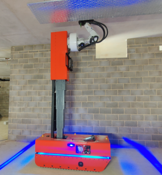 這個(gè)機(jī)器人平臺(tái)可以伸縮,最高可達(dá)到4米,安裝ABB機(jī)器人可以完成指定的任務(wù),目前已在現(xiàn)場(chǎng)為Skanska公司鉆孔和安裝高天花板錨。它的設(shè)計(jì)目的是實(shí)現(xiàn)在施工現(xiàn)場(chǎng)的自主導(dǎo)航,并在提高生產(chǎn)率、質(zhì)量和安全性的情況下執(zhí)行特定任務(wù)。