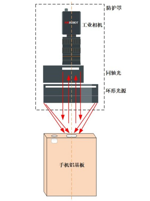 CNC手機孔加工定位引導系統(tǒng)主要由6MP分辨率工業(yè)相機、MF系列工業(yè)鏡頭、定制化組合光源組成。