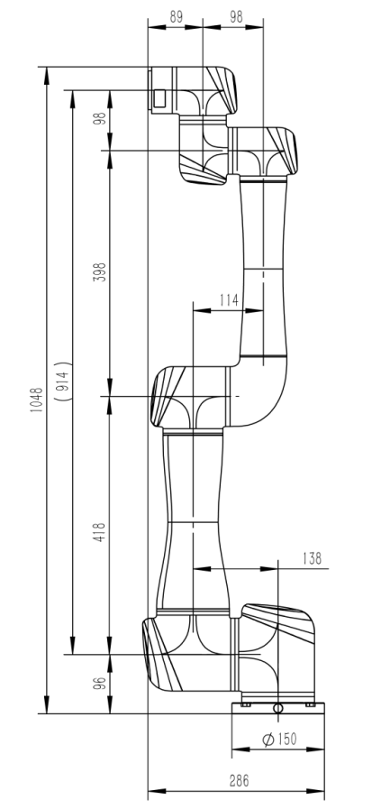 如圖1所示,ELITE機器?機械尺?圖,在安裝時務(wù)必考慮機器?的運動范圍,以免磕碰到周圍?員和設(shè)備。
