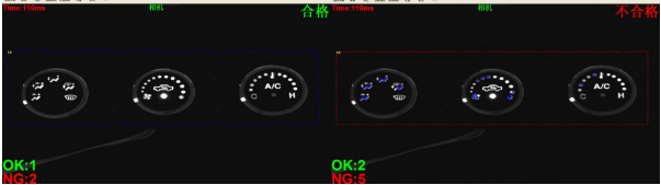 汽車儀表盤是反映車輛各系統(tǒng)工作狀況的裝置,由于上面集成了各種指示燈和儀表,需要在生產(chǎn)過程中進(jìn)行大量復(fù)雜的檢測工作,而且生產(chǎn)工位對節(jié)拍要求較高,要求檢測速度一定要快。另外,檢測項(xiàng)復(fù)雜,包含了字符識別、顏色識別、圖案匹配等。以前使用人工檢測,檢測效率低,儀表盤的誤檢率和漏檢率居高不下。顯揚(yáng)科技3D視覺能夠幫助汽車儀表盤制造廠商提供性能強(qiáng),算法完備,檢測速度快的視覺系統(tǒng)。