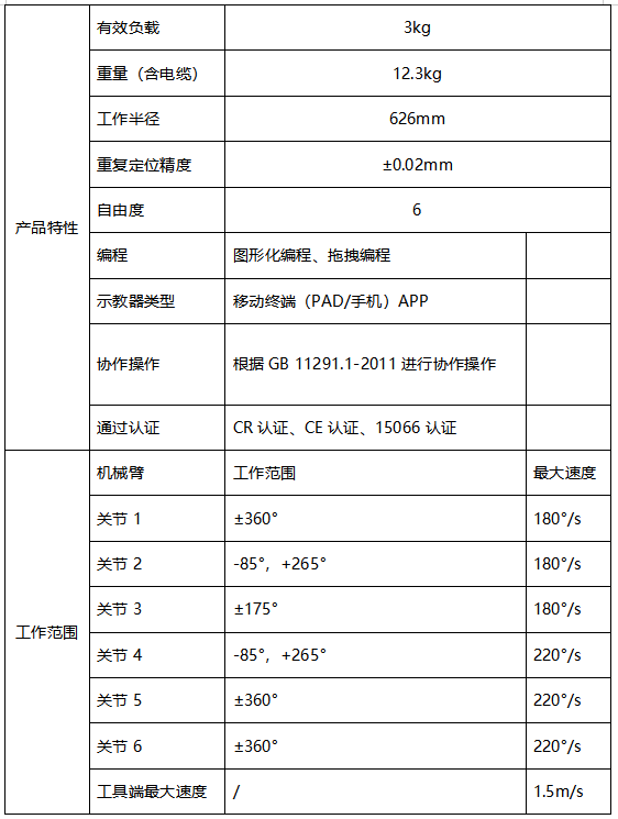 JAKA Zu 3s協(xié)作機(jī)器人產(chǎn)品參數(shù)