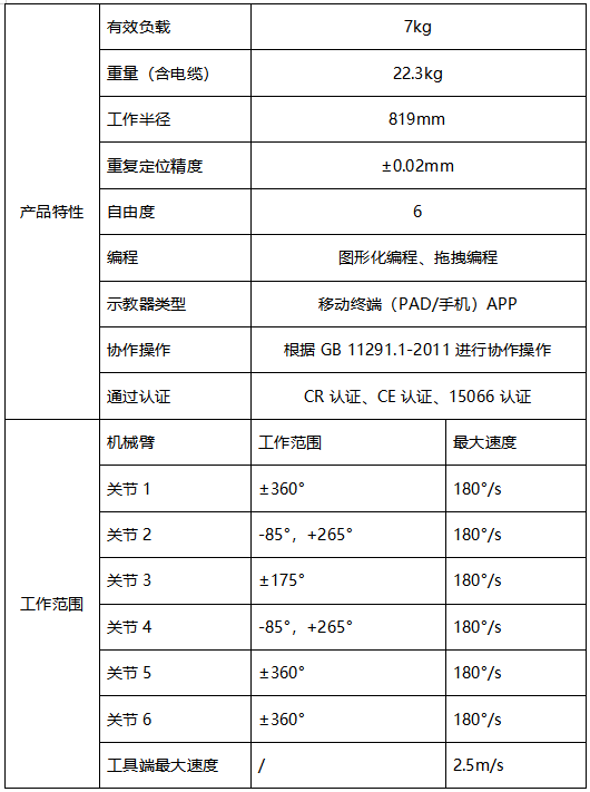 JAKA Zu 7s協(xié)作機(jī)器人產(chǎn)品參數(shù)