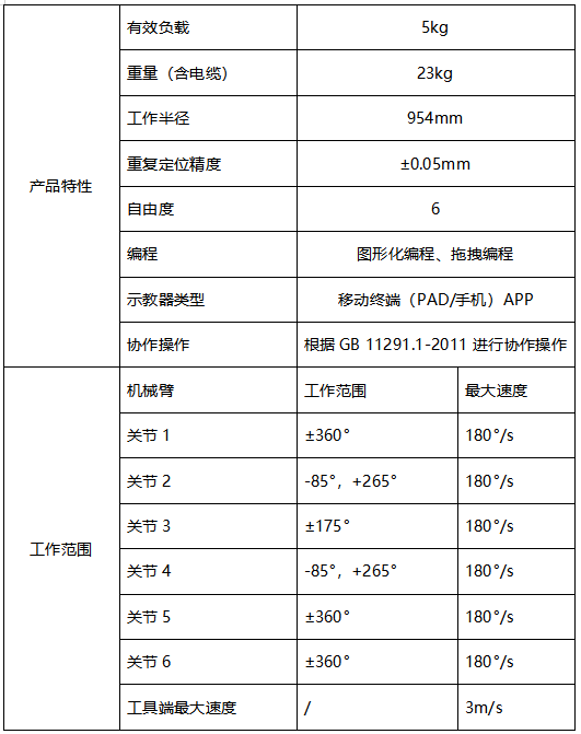 JAKA C5協(xié)作機器人產(chǎn)品參數(shù)