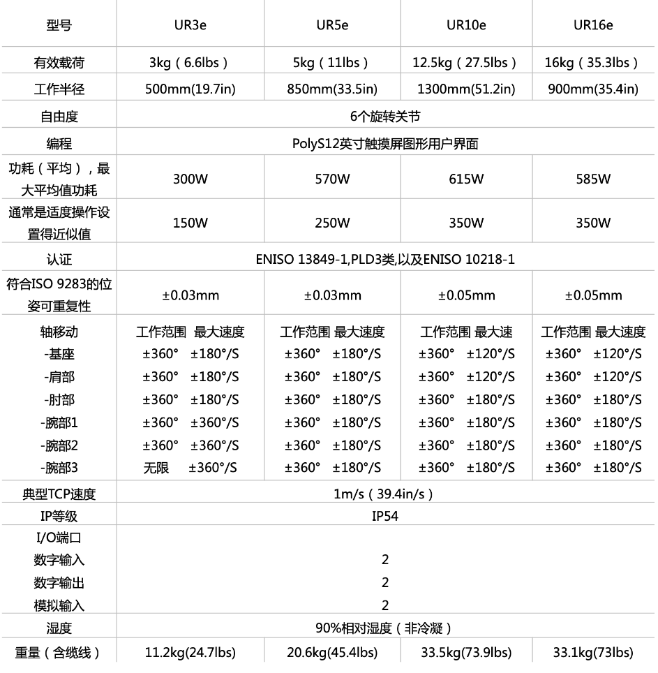 UR10e協(xié)作式機(jī)器人產(chǎn)品參數(shù):