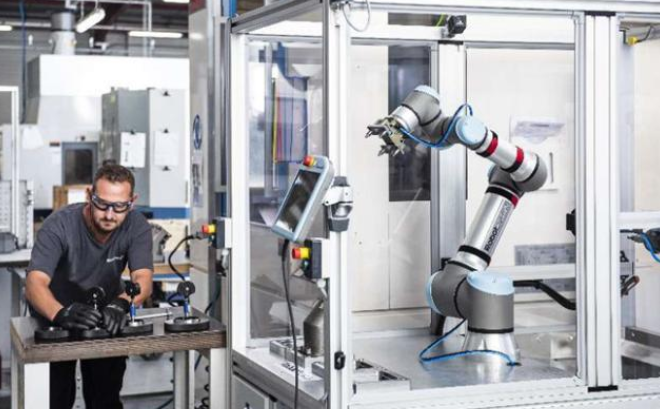 UR5 機(jī)器人自重很輕(僅 18.4 kg ),可以方便地在生產(chǎn)場(chǎng)地移動(dòng),而且不需要繁瑣的安裝與設(shè)置就可以迅速地融入到生產(chǎn)線中,與員工交互合作。