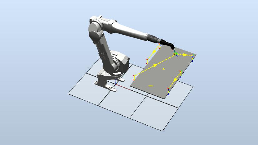 • ABB IRB 4600機(jī)器人從輸送線上吸取太陽(yáng)能電池串,按特定順序放置到定位好的玻璃板EVA面上,完成排版。