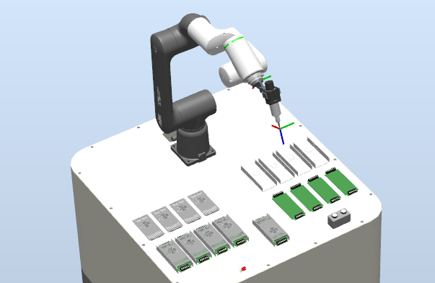 - CRB 15000鈑金組裝及螺絲鎖付工作站演示了鈑金組裝的工藝流程:GoFa™ CRB 15000協(xié)作機(jī)器人將鈑金從各個(gè)料盤(pán)中取出,放置到組裝位進(jìn)行裝配,然后進(jìn)行螺絲鎖付。