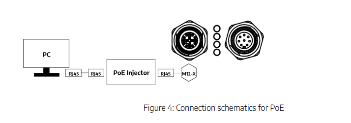 1.將M12-X RJ45電纜連接到MotionCam-3D和您的計(jì)算機(jī)或交換機(jī)