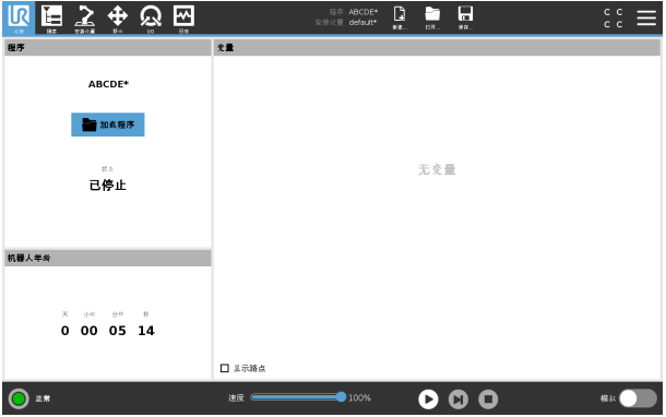 Program字段,顯示被加載到機器人的程序的名稱以及它的當前狀態(tài)。可以點擊加載程序選項卡來加載不同的程序。