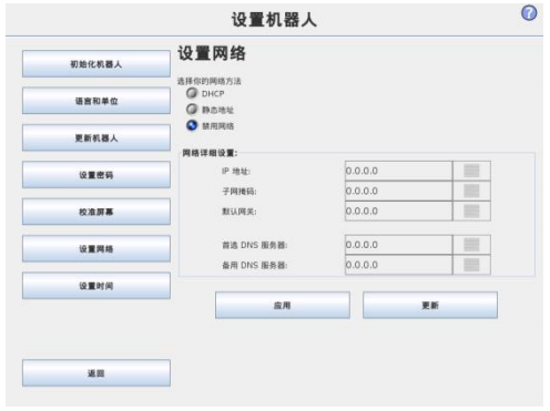 • 設(shè)置網(wǎng)絡(luò)打開用于設(shè)置機器人控制箱以太網(wǎng)的界面 。