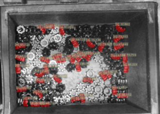 采用顯揚科技自主研發高速高清3D機器視覺設備HY-M5能很好地實現內星輪自動化上料過程。采用HY-M5 3D相機可輕松應對現場表面反光、尺寸小的內星輪,視覺引導機器人從深框中抓取無序堆疊的內星輪,隨后放置于上料輸送線上,能讓工廠實現全自動化上料,提高效率,節省人力成本。