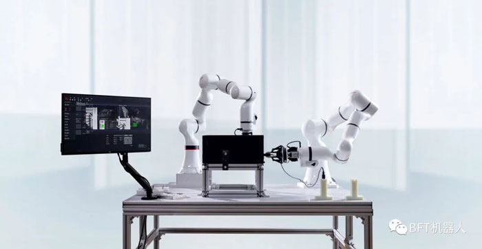 單臂協作機器人只有一條手臂,是機械臂中最常見的形式。由于布置靈活、控制簡單,廣泛應用于各種行業(yè)場景。雙臂協作機器人擁有更廣闊的動作空間,高效靈活,適用于需要交互協作的負載應用,或者在有限空間完成多動作的場景,如雙手擰瓶蓋的協同動作,與單臂機器人相比,雙臂協作機器人具有更高的靈活性和可操作性,可以完成單臂不能完成的任務。