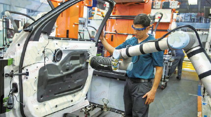 UR10可以幫助PSA Peugeot Citroen制造商每年生產40,000多輛汽車。在生產過程中,UR10固定在車輛下方的柱子上。車輛駛入時,協作式機械臂伸出來,在汽車的每一側插入三個螺釘。在生產中,這是確保車輛側面正確連接的關鍵步驟。UR10履行職責后,燈泡將會立即被點亮,手臂會重新折疊并準備重復執行此任務。