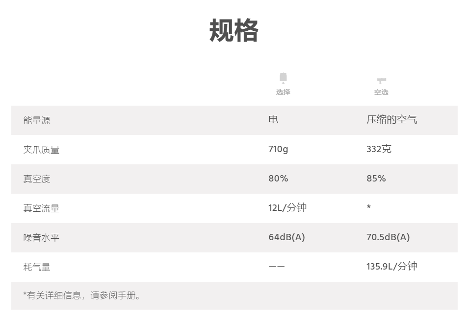 電子選擇:連接到協作機器人手腕;無空氣供應;易于處理;