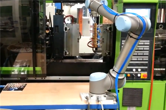 工作區域空間狹小,優傲機器人在注塑機內有限的空間靈活取件。