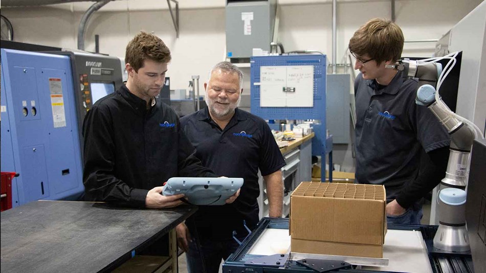借助優傲協作式機器人中內置的堆垛向導,Tool Gauge可以輕松編程機器人,讓機器人將每個零件放入網格化布局的盒子的開放單元中。引入優傲機器人后,Lee將機械師安排到了價值更高的工作中(如設置和編程數控機床),機械師的才能得以充分挖掘,他表示:“啟用優傲機器人后,人工成本驟降,第一批訂單我們就省下了9,000美元,這樣的情形以后必然會越來越多。”