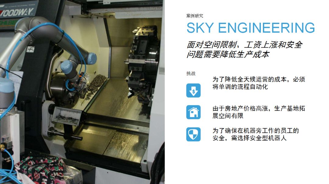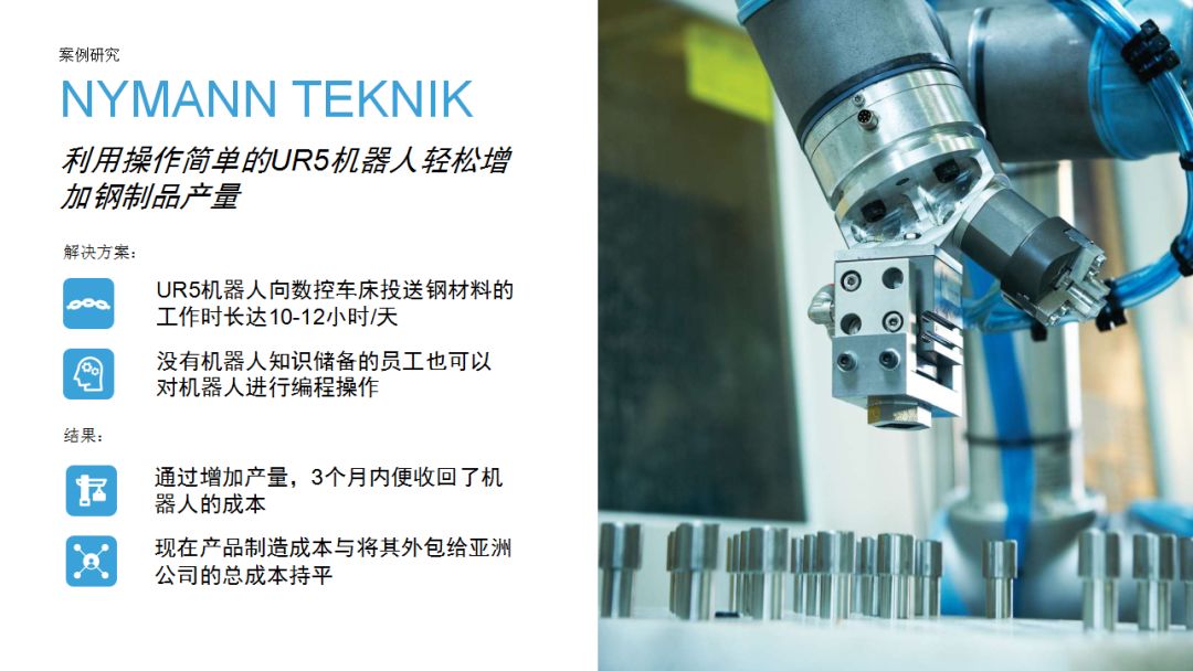 3、優傲機械臂的導入能夠替代原來照管機器人的工人,從這些崗位上轉移出來的人力可以從事有更高附加值的工作。同時,也降低了人手操作機床的危險系數。