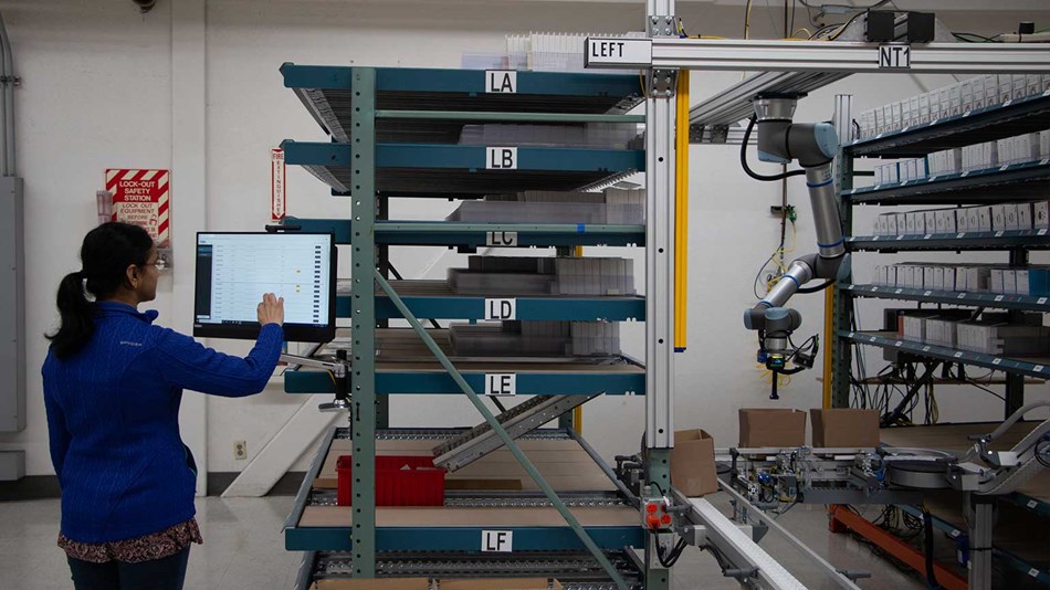 DCL Logistics的自動化工程師Isaac Toscano解釋說,自動化生產線也為工人帶來了福音。他說:“通常,在整個過程中,我們會整夜累積訂單。” “當人們早上來啟動機器時,他們看到他們有各種各樣的訂單。他們一直在敦促我們打開機器人并做好準備,因為這可以減輕他們的負擔。” 在季節性高潮時期尤其如此,例如感恩節后的黑色星期五。那天,UR機械人只有一小批人員,一天之內就收到了4,400份訂單,以確保補充零件,從而使機械人可以繼續不停地工作。