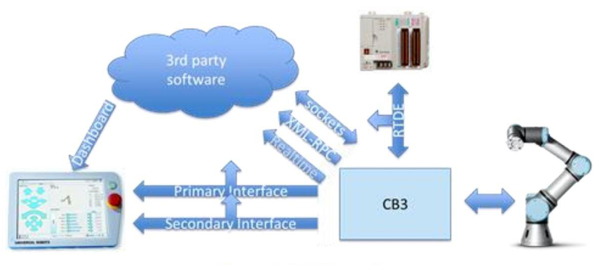 UR機(jī)械臂提供豐富的通訊端口,用來和上位機(jī)進(jìn)行通訊。通過不同的端口可以實(shí)現(xiàn)不同的控制功能,從而實(shí)現(xiàn)上位機(jī)控制。