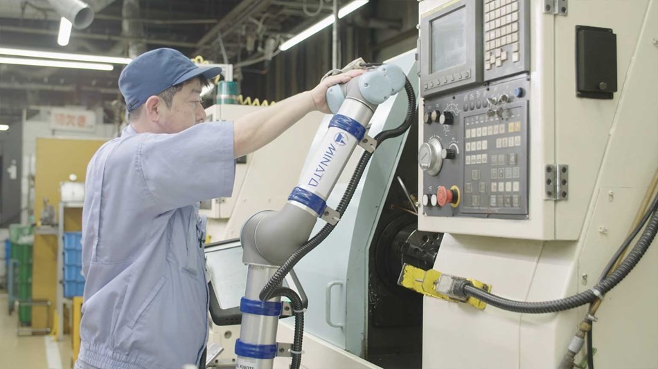 A公司反映,在過去,他們需要一個人負責一臺數控機床。但是自從引入了UR協作機器人之后,一個人可以負責多臺機器。