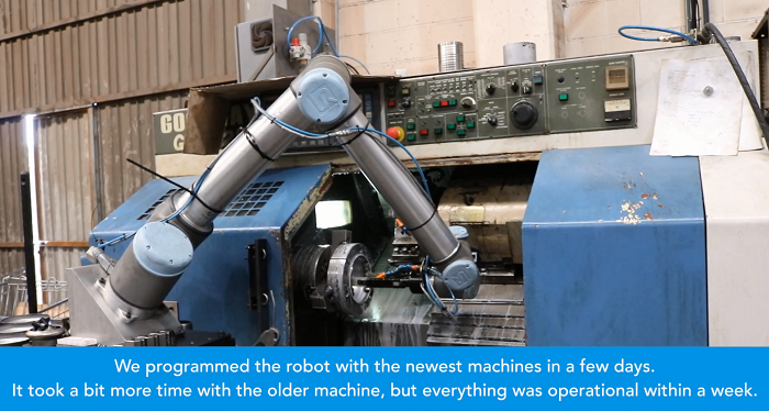 將Robotiq 2F-140自適應(yīng)抓手和優(yōu)傲機(jī)器人UR10集成到每臺(tái)機(jī)器上,使每位員工可以照顧三臺(tái)機(jī)器。現(xiàn)在,他們的機(jī)器可以全天候運(yùn)行,生產(chǎn)能力提高了一倍。