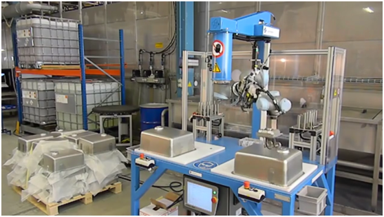 Franke每年生產超過10,000個廚房水槽的廚房。按下鋁制水槽單元后,需將安裝塊粘在每一側。Franke公司覺得,重復性任務可以機器人自動化,節省膠水并減少膠合安裝塊時出現人為錯誤。關鍵的挑戰是確定一種解決方案,可以分配膠水并在所有側面安裝安裝塊。