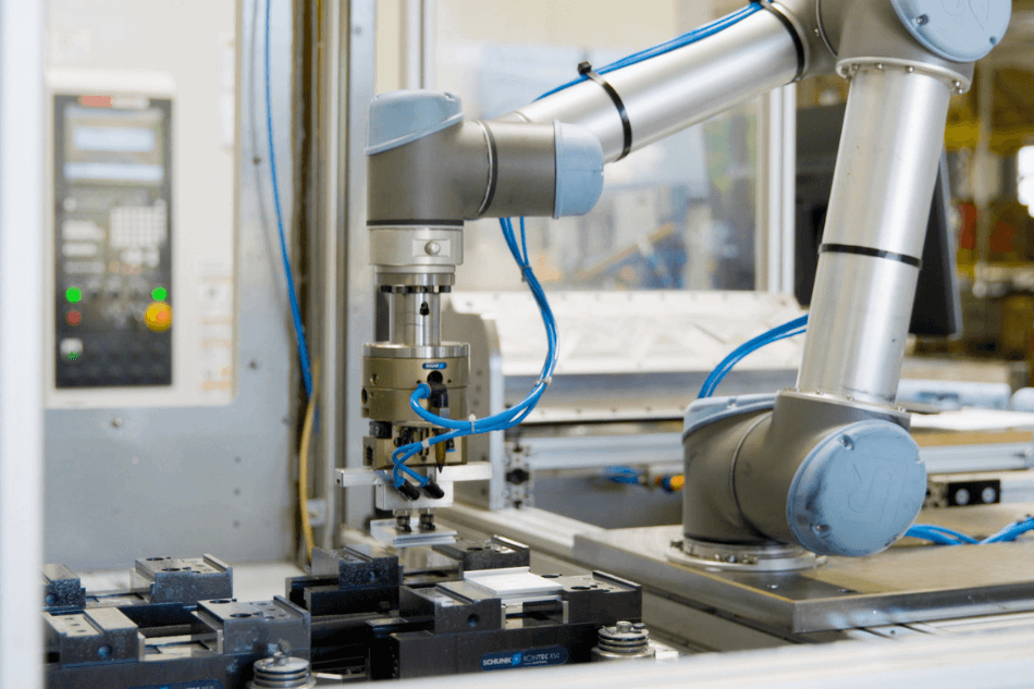 來自Universal Robots的兩個協作機器人從包裝箱中挑選了隨機定向的零件并送入CNC銑床,從而提供了零缺陷生產。