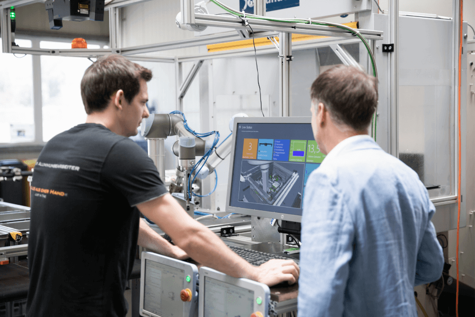 在兩班制作業中,協作機器人每天處理多達2400個鋁零件。為了做到這一點,Waltle集成了3D攝像頭系統。外部攝像頭最初會掃描鋁制零件并生成3D數據集-所謂的散點圖。這使第一個協作機器人能夠識別復雜的表面結構以及對象的精確位置。配備了真空吸盤的協作機器人可以一箱又一箱地投入使用。刀具法蘭上的附加軸使協作機器人能夠執行無碰撞且精確的工件處理。為確保抓取精度,協作機器人將零件對準臨時托盤。如果零件正確安裝,則UR5機器人會將其放入另一個托盤中。第二個協作機器人從那里拾取零件并將其精確地放置在CNC銑床的液壓夾具中。