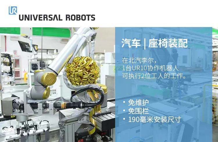 在某汽車行業(yè),1臺(tái)UR10協(xié)作機(jī)器人可以完成2個(gè)工人的工作。