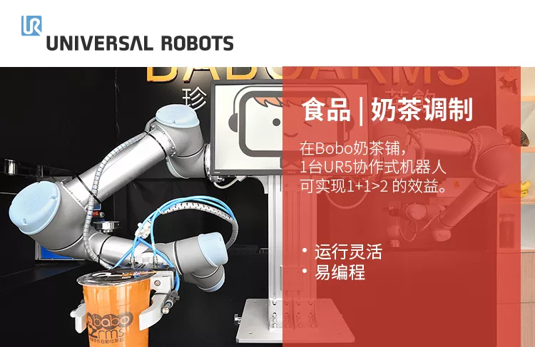 在BOBO奶茶店,UR5協(xié)作機(jī)器人可以分擔(dān)部分工作。