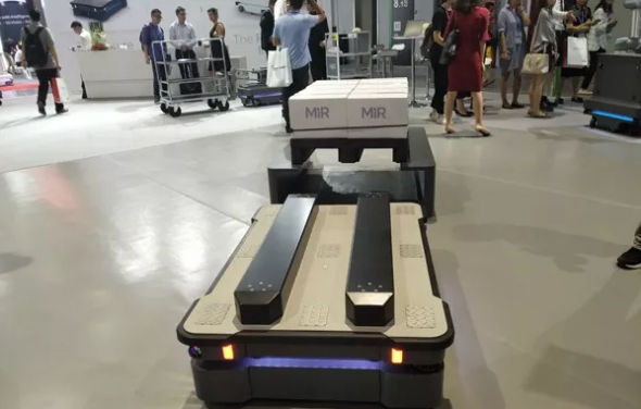 MiR500 可以通過平板電腦了解,可以選擇需要執行的命令,移動機器人就會自行規劃路徑去目的地。當傳感器識別到達貨架后,MiR500將自動駛入貨架底部,向上推舉托盤,將上面放置的物料搬運至目的地后再重復這一動作卸下物料。MiR500載重達500公斤的重物,速度可達每小時7.2公里。