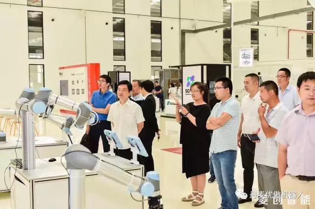 來(lái)賓們參觀優(yōu)傲UR人機(jī)協(xié)作機(jī)器人展區(qū)