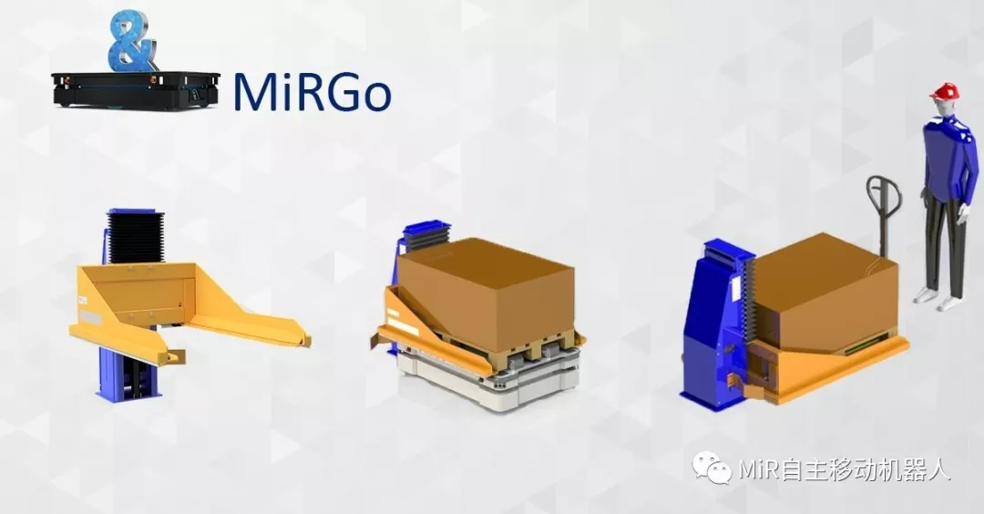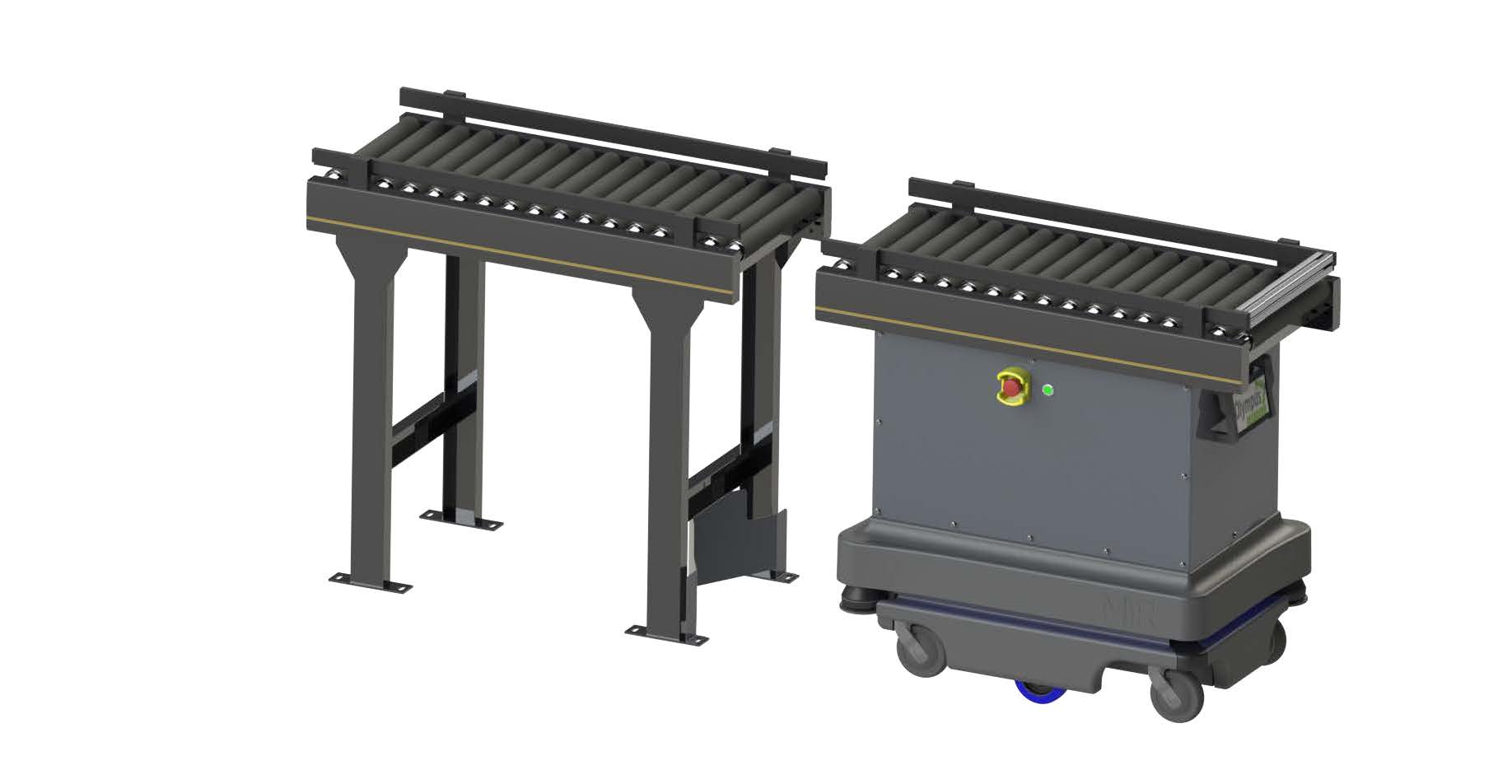 輸送機用于自動揀選和放下貨物。 它的種類繁多,從小手提袋到托盤。 MiR機器人的頂部裝有輸送機,可以進行全自動生產周期。