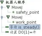 機器人程序中,在啟動擰緊槍旋轉信號之前寫入“wait is_steady()”指令,當is_steady()返還值為真時,優傲機器人可以接受外部更大壓力或扭矩,如下圖所示: