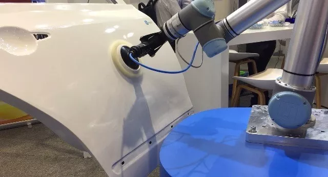 UR機器人搭配OnRobot壓力傳感系統進行工件打磨。該應用方案使用UR協作型機器人配合OnRobot壓力傳感系統進行無縫對接。通過裝在UR協作機器人上的壓力傳感器,實現自動拋光路徑引導,無需示教點位,方便客戶快速部署自己的解決方案。 通過末端拋光工具,實現恒定壓力輸出打磨工作。