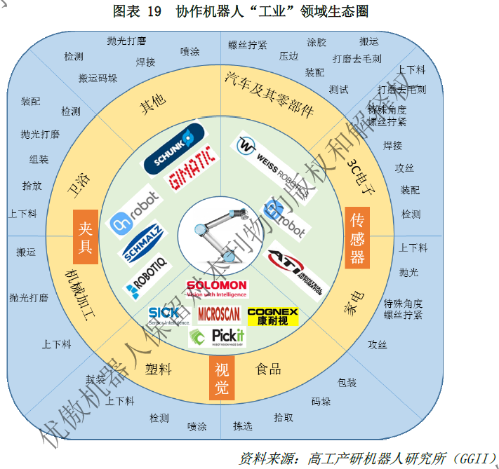 協作型機器人本身具備安全、易用、柔性、系統整合成本相對較低等特點,可滿足“工業”領域中諸多需要柔性加工的需求,為廣大中小企業創造價值;與此同時,協作機器人與周邊配套設備廠商亦會根據終端的不同應用需求,更新現有產品并開發新產品,實現協作機器人導入更廣范圍領域的覆蓋。