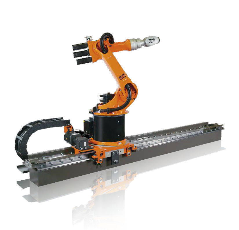 庫卡立式加工中心的防護門打開,托盤開關定位,將裝滿工件的夾具放置到加工區域加工。當機床加工工件面時,機器人開始將更多的毛坯件安裝到第二個空置的托盤夾具上。當毛坯件端部面加工完成以后,托盤再一次更換位置。機器人從托盤上卸除加工面的工件,然后將其傳送到在機器人防護罩內的 “翻板工作站”,然后從內側板將其安裝到工作站上,并通過這一工作站將工件有效地翻轉,使未加工面朝上,并再次安裝到夾具上夾緊。
